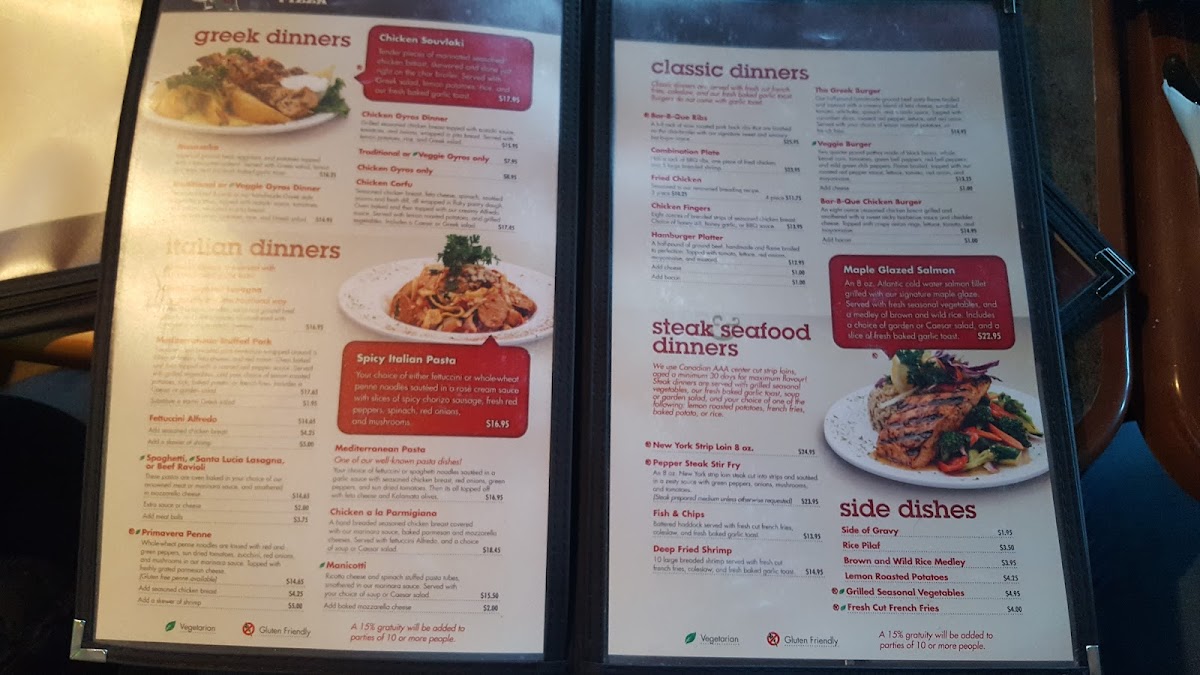 Choose two of our famous pastas with two slices of our fresh baked garlic toast, a Large Greek or Caesar salad and a 2 litre pop.